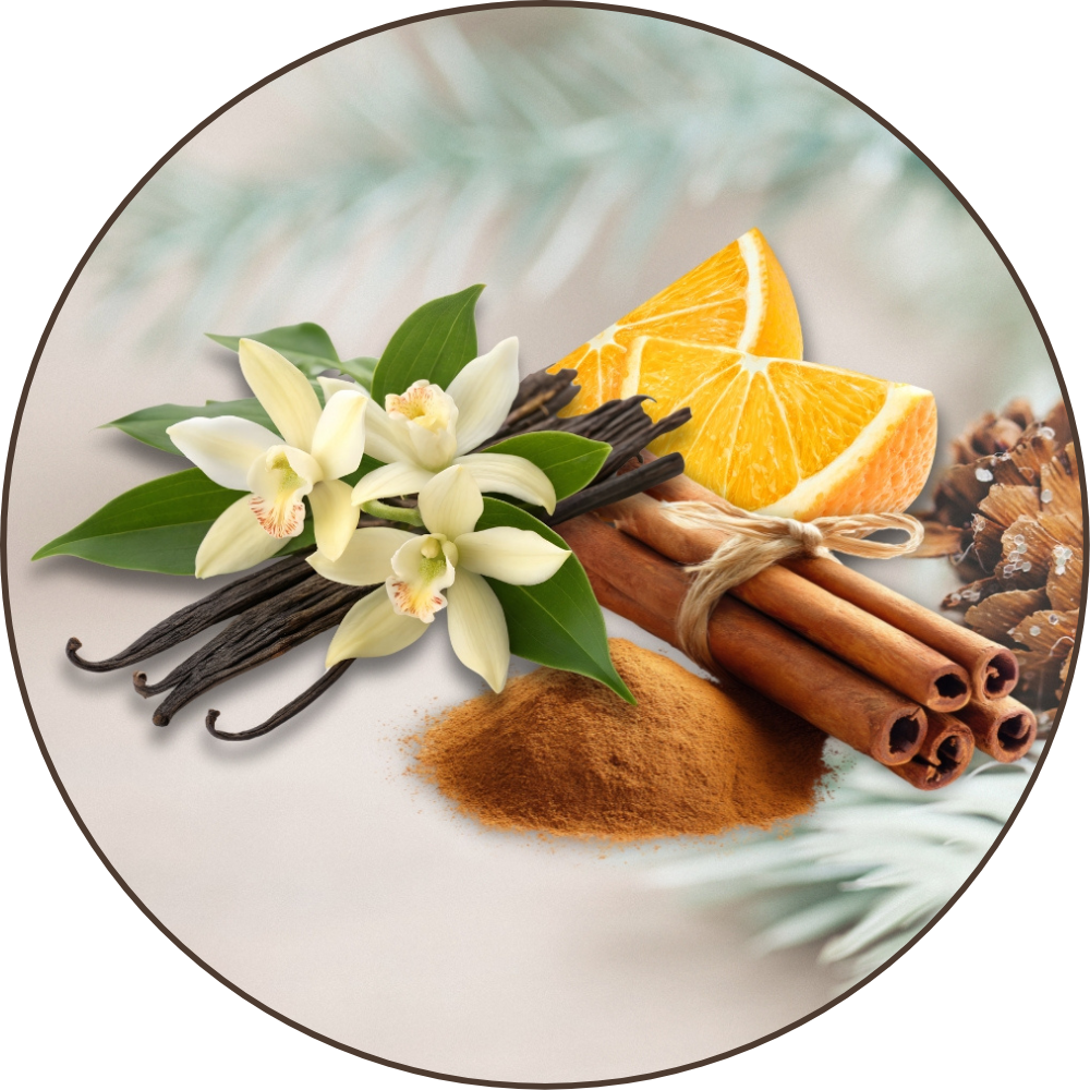 - Zimt & Nelkenblüte verleihen dem Duft seine würzige Tiefe – sie stehen für Wärme, Geborgenheit und festliche Stimmung.