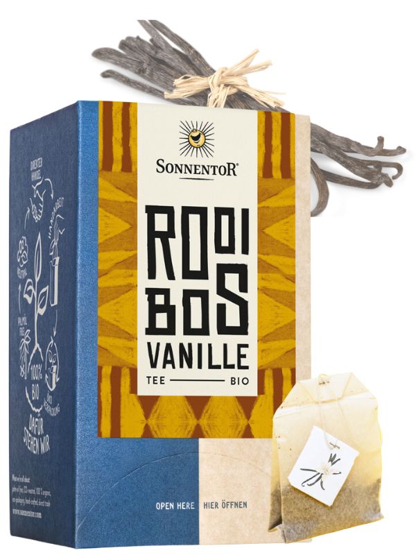 Dieser Rotbuschtee ist mit Vanille verfeinert und kann pur,