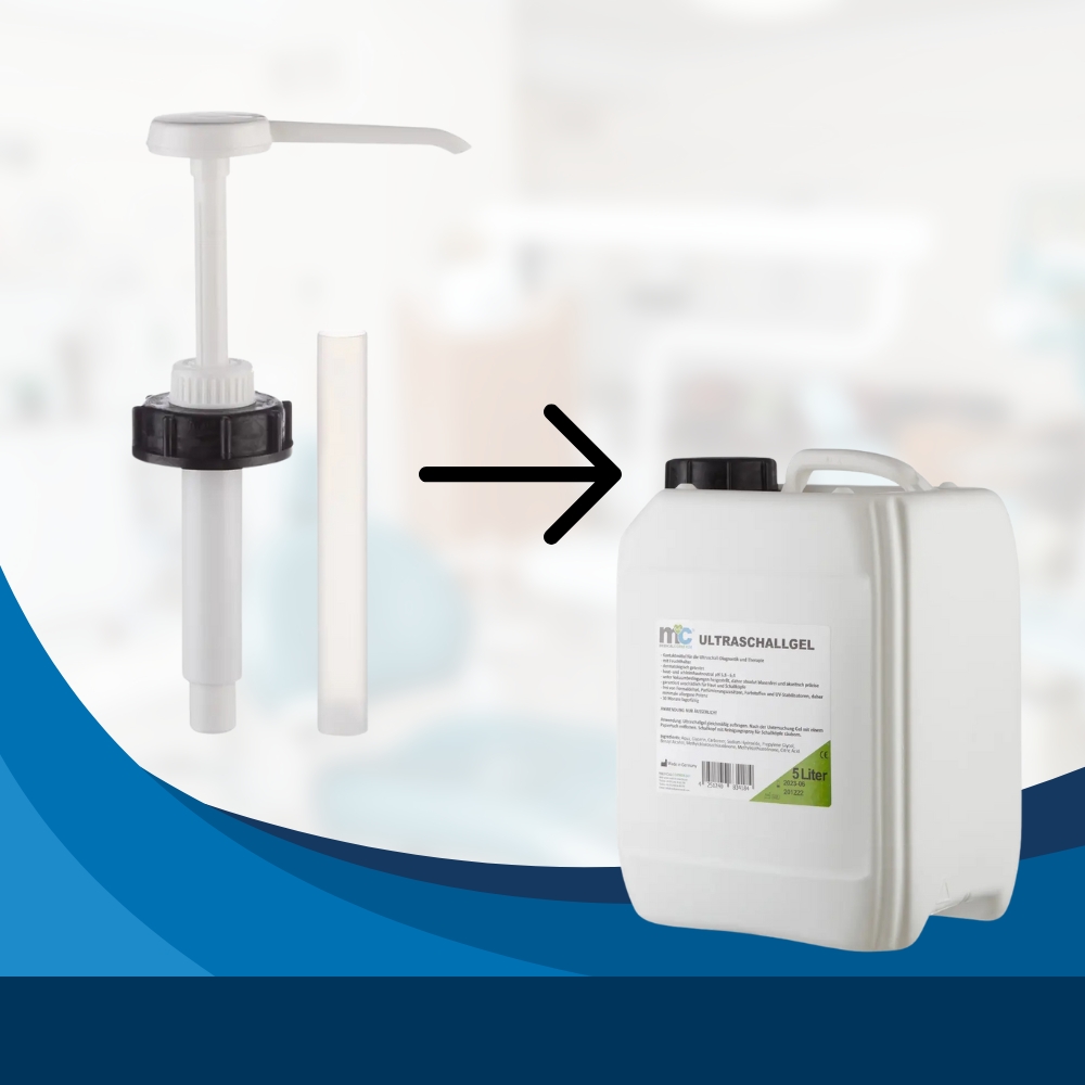 - Ultraschallgel-Kanister 5 Liter – für eine optimale Pumpleistung beim 5 Liter Kanister wird empfohlen, den mitgelieferten Schlauch etwas zu kürzen.